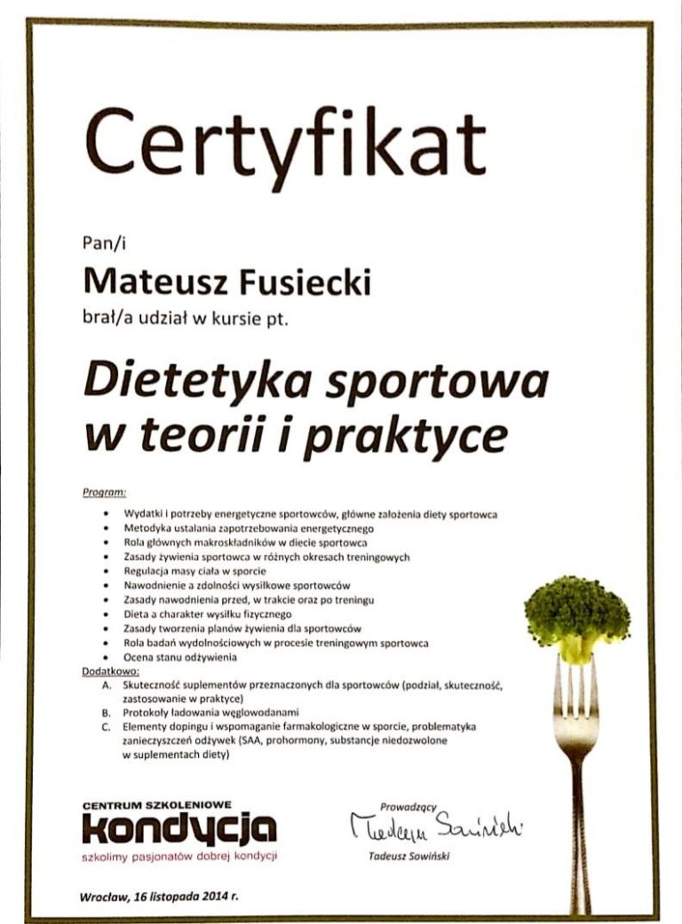 Jako trener personalny, od wielu lat brałem udział w licznych szkoleniach z zakresu fitnessu, zdrowia i wellness. Podczas tych szkoleń zdobyłem wiele cennych umiejętności i wiedzy, która pozwala mi pomóc moim klientom w osiągnięciu ich celów zdrowotnych i fitnessowych.