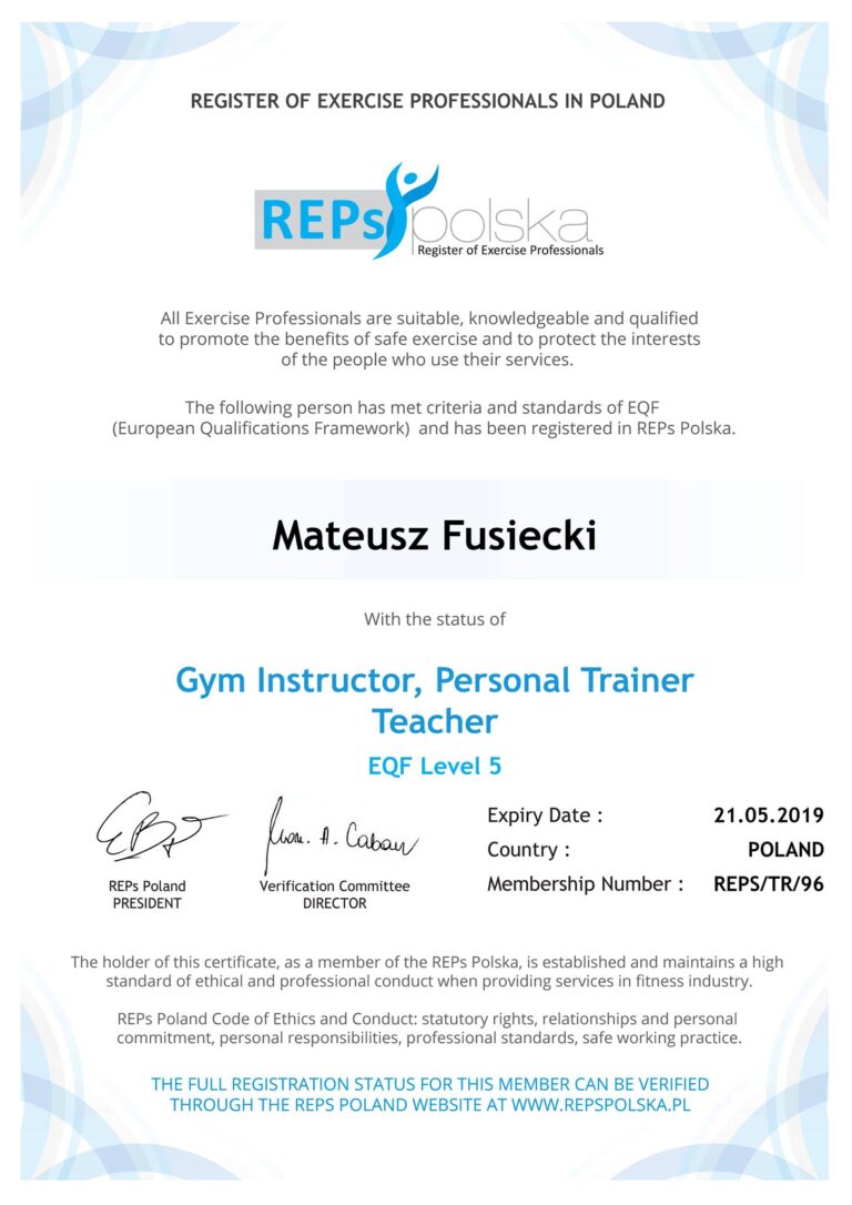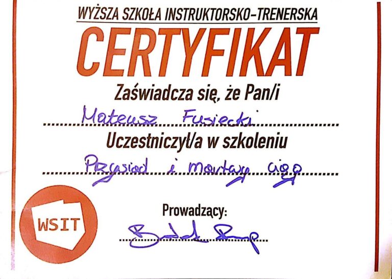 Ukoronowaniem i potwiedzeniem mojej wiedzy było zdobycie międzynarodowych kwalifikacji instruktorskich  EQF level 5, które uprawniają mnie do nauki przyszłych trenerów, szkolenie to jest akredytowane na całym świecie.